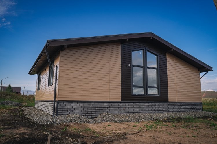Эксклюзивный проект в лучших традициях швейцарского стиля «Шале»- Это дома, которые возводились в прежние времена в Альпах. Экологичность и применение натуральных материалов – отличительная черта этого стиля. “Альпийские домики” ценятся за изысканный внешний вид, естественное освещение, отличную теплоизоляцию, покатую крышу с большим углом. Большие, панорамные окна – норма для такого здания. Они помогают буквально заливать дом светом. Здание благодаря такому решению отчасти сливается с окружающим пейзажем, а в комнатах очень светло. Продуманный вариант планировки, позволяет перемещаться в плоскости одного этажа и не возводить лестничную конструкцию, экономя много полезной площади. Так, гостиная-кухня занимает целых 34 м², выход которой ведет на просторную террасу